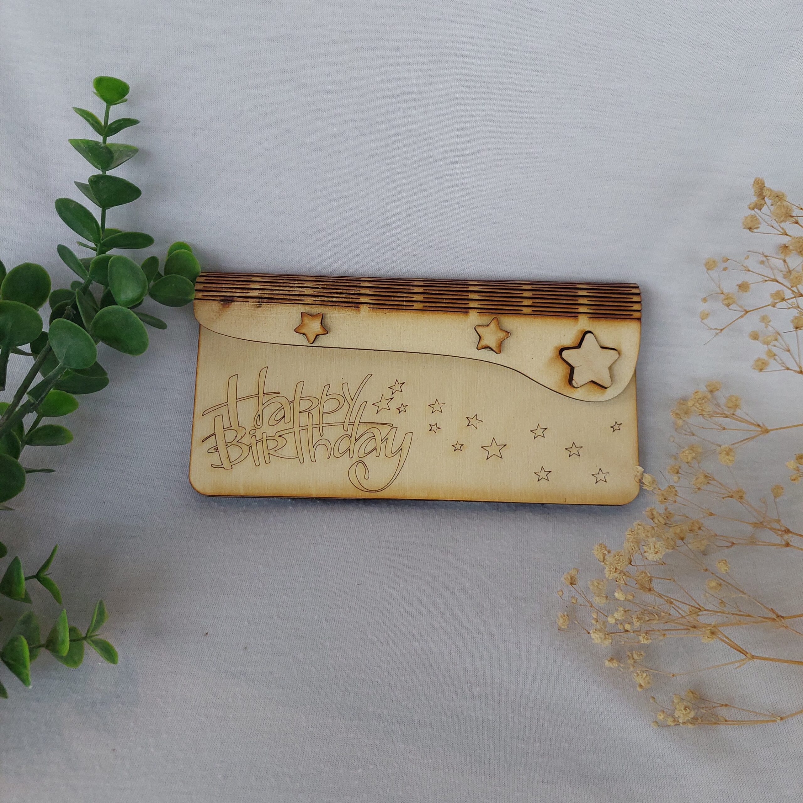 Hölzerner Geldumschlag „Happy Birthday“ – Kreative Geschenkverpackung & Gutscheinkarte aus Holz